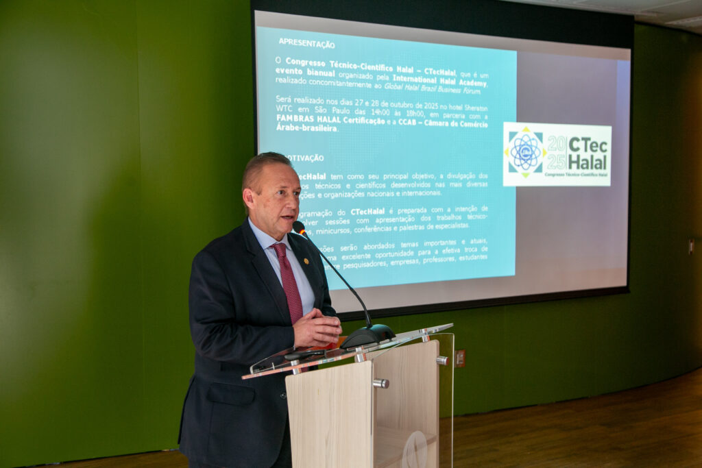 O Global Halal Brazil Business Forum (GHB) será realizado nos dias 27 e 28 de outubro, em São Paulo, com o objetivo de impulsionar os negócios entre o Brasil e o mercado Halal internacional. Organizado pela FAMBRAS Halal e pela Câmara de Comércio Árabe-Brasileira (CCAB), o evento reunirá autoridades, especialistas e representantes da indústria para debater inovação, sustentabilidade e estratégias de expansão no setor Halal.