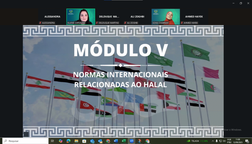 No Módulo I, foram apresentados os princípios do Islam e o conceito de Halal, mostrando a base ética e espiritual que sustenta esse mercado. O Módulo II abordou a evolução e a relevância do Halal no Brasil, país de destaque no cenário mundial de exportações. No Módulo III, os participantes aprofundaram-se nos conceitos de Halal, Haram e Mashbooh, compreendendo os critérios que definem se um produto pode ou não ser consumido.