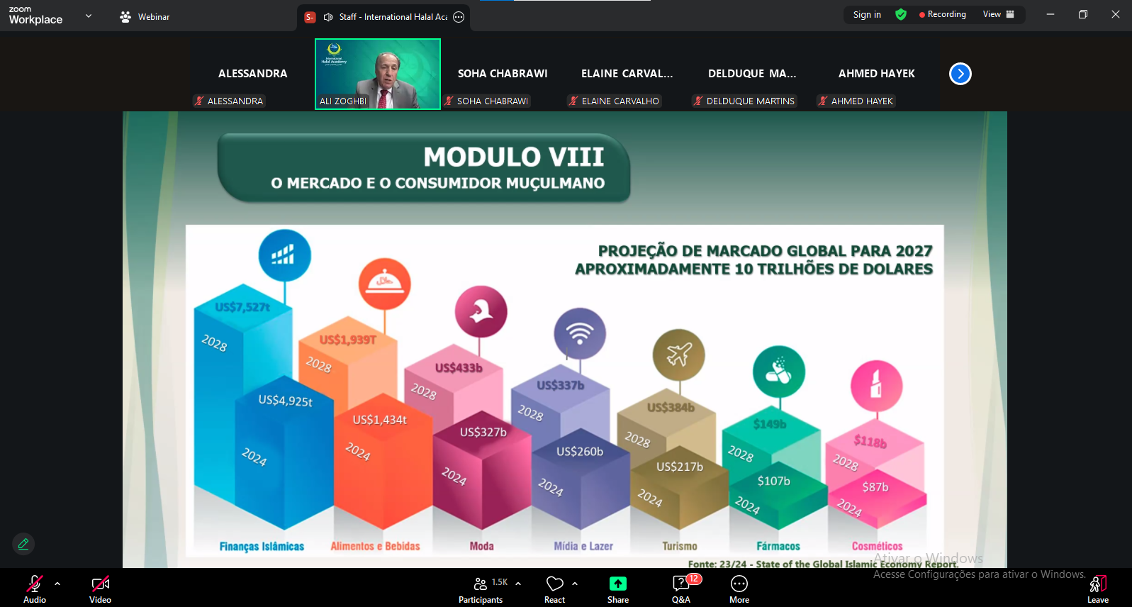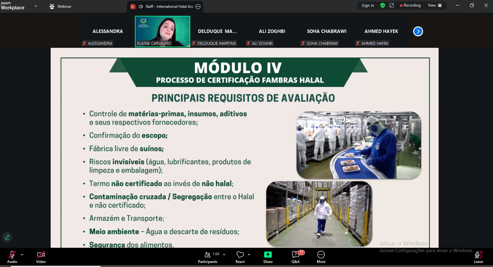 Em parceria com a FAMBRAS HALAL, a International Halal Academy, instituto privado de formação, capacitação e especialização no segmento Halal, promoveu na última sexta-feira (12) o Curso de Capacitação Técnica Halal. O encontro contou com a participação de mais de 2.000 inscritos, representando aproximadamente 450 empresas do setor, incluindo Cargill, BRF, Minerva, Duas Rodas, Ajinomoto, além de unidades internacionais como Frigoríficos Ganaderos (Colômbia), La Fabrica De La Felicidad S.A.S, Nutresol e Truchas Belmira S.A.S.