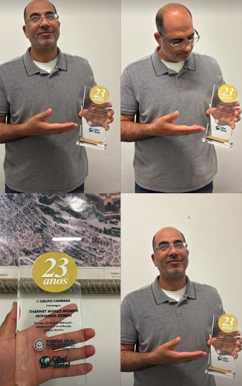 De origem simples e trajetória marcada por coragem, Thawart Ahmed Moneir Zeyada deixou o Egito em busca de novas oportunidades no Brasil. Ao chegar em 2001, encontrou no Halal não apenas um trabalho, mas um caminho de vida. Desde fevereiro de 2002, ele se dedica ao Grupo FAMBRAS, onde cresceu profissionalmente e ajudou a consolidar a CIBAL Halal como uma das referências no setor. Hoje, aos 49 anos, carrega quase 24 anos de história dentro da empresa, construída com fé, disciplina e respeito ao Islam.