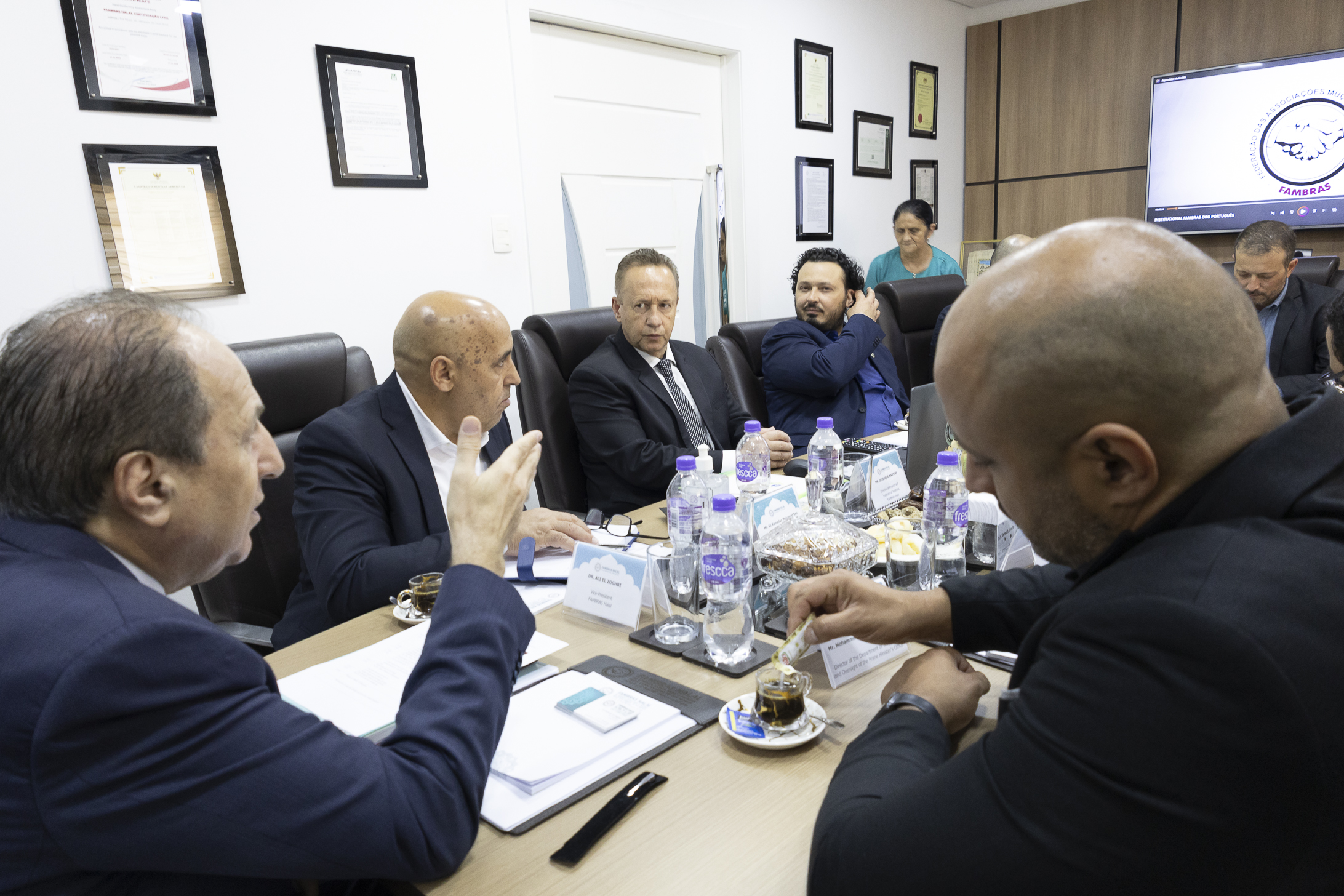A agenda foi concluída na sede da FAMBRAS Halal, em São Paulo, onde a delegação foi recebida pelo Sr. Nizar Ghandour, Diretor Internacional, e conheceu as áreas técnicas e operacionais, acompanhando toda a estrutura responsável pelos processos de certificação halal no Brasil. Foram apresentados também os projetos sociais e assistenciais realizados pelo Grupo FAMBRAS, reforçando o compromisso da entidade com responsabilidade social e promoção de bem-estar comunitário. O encontro final destacou a importância da cooperação institucional e reafirmou o papel da FAMBRAS Halal na promoção de relações comerciais baseadas em segurança, qualidade e conformidade religiosa.